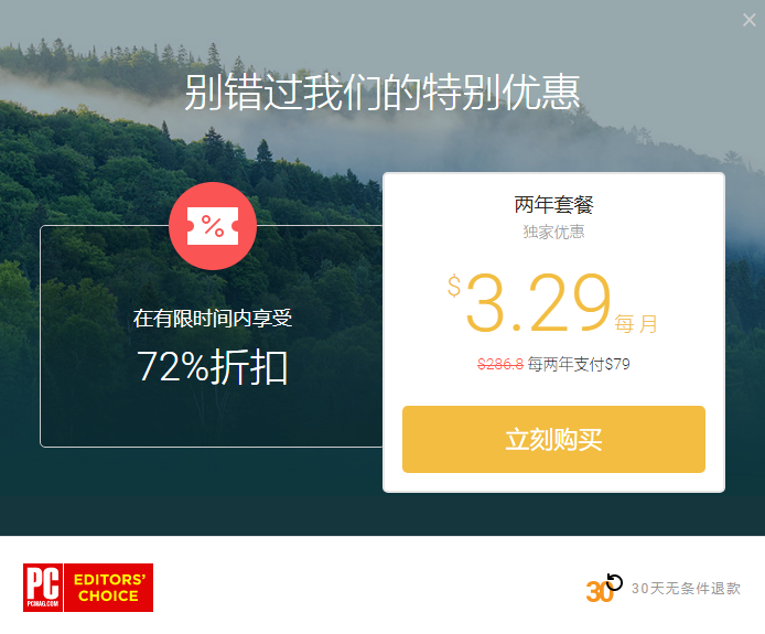 价格:1年:$2.87/月; 6个月:$8/月;一个月:$10/月