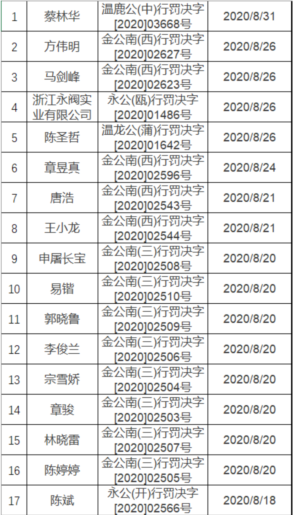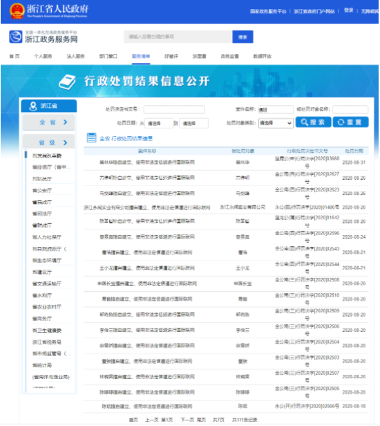 信息来源:浙江政务服务网 行政处罚结果信息公开系统