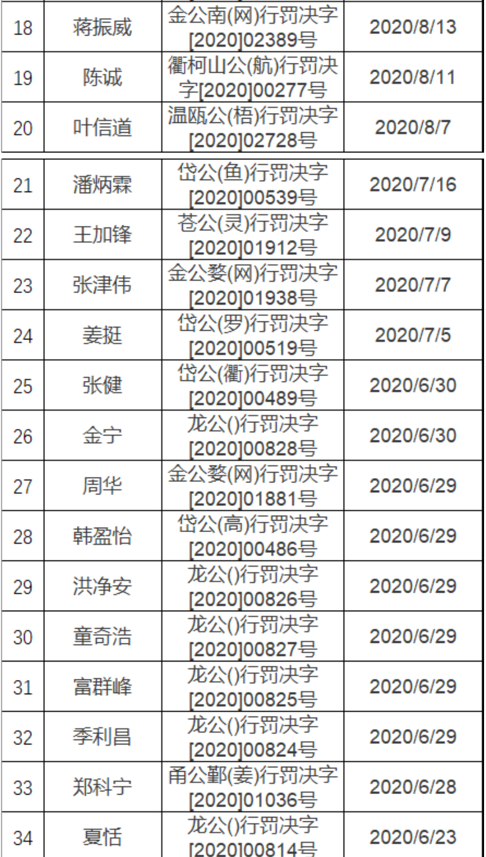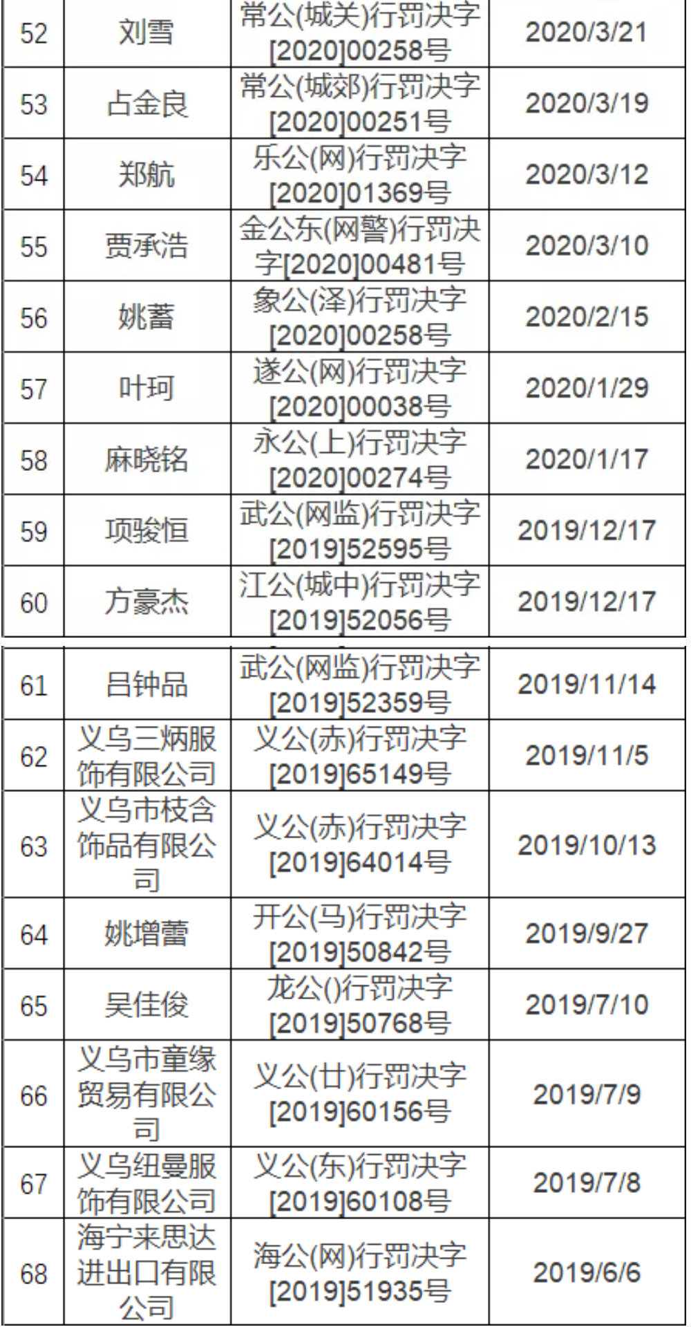 以下为浙江省“擅自建立、使用非法定信道进行国际联网”翻墙处罚案件列表