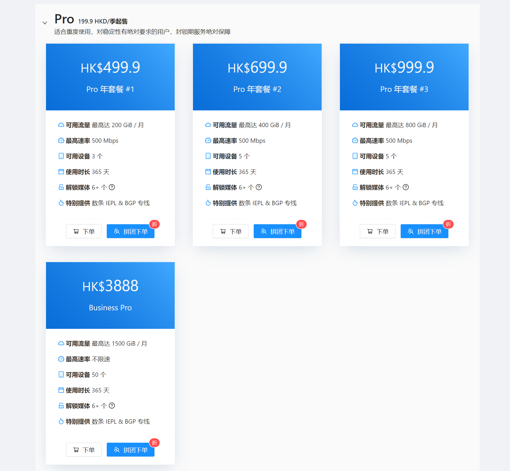 Lite 套餐月付为69.9港币,100G流量,节点与其他套餐相同。支持购买叠加流量包。