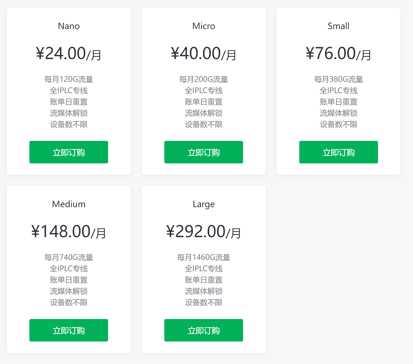 白月光机场套餐均不限制设备数量和速率,除了流量有差异外,使用的节点也不受限制。