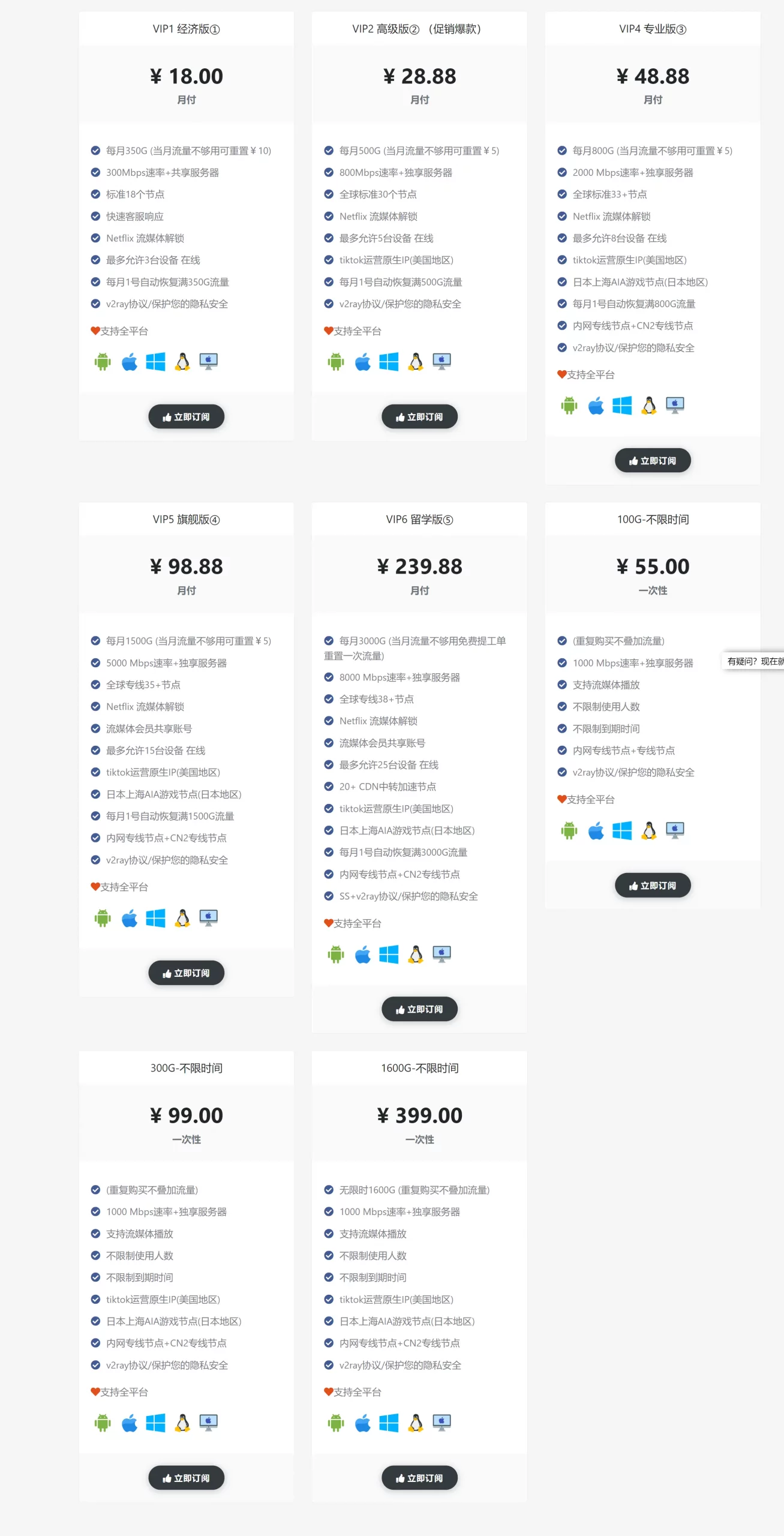 注意:以上部分是我们常说的「机场」服务,由于有专属一键翻墙客户端,所以列在此处。