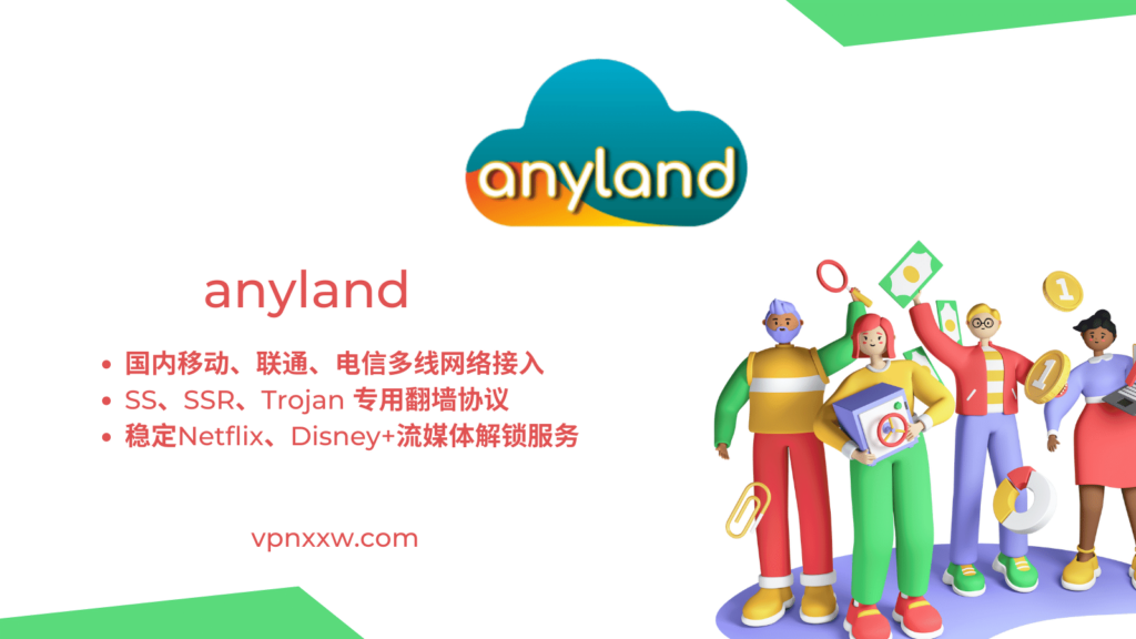 Anyland 是一家2021年12月开业的翻墙机场,早期支持 Trojan 和 Shadowsocks 翻墙协议,后更换为 V2ray 的 vmess 协议,国内有移动、联通多个入口,隧道和专线过境。2023 年,Anyland 机场又再次新增了 Trojan 节点,不过为直连线路。Windows、Mac 和 安卓用户可使用 Anyland 官方的一件翻墙VPN客户端。